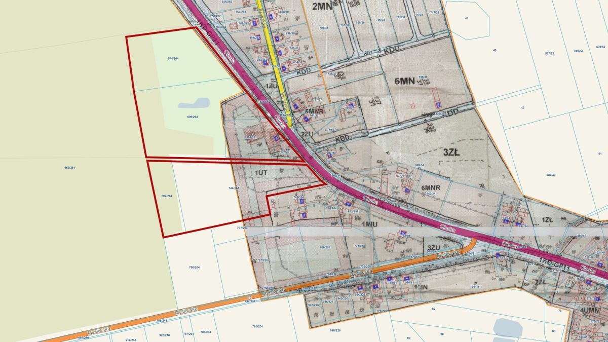 numery działek: 556/261, 557/261, 574/264, 607/264, 609/264, 744/264